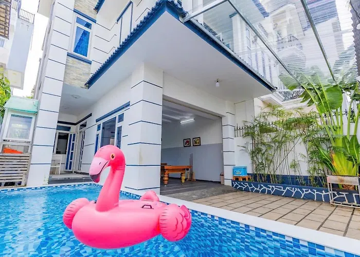 About 25 minutes' walk from the Green Coral Tourist Area, the beachfront Biet Thu Tina Khu Phuong Nam 4Pn Villa Vung Tau provides access to a terrace with a dining table. Offering Wi-Fi, the villa is located 2.5 km from Back Beach Square, Vung Tau City.